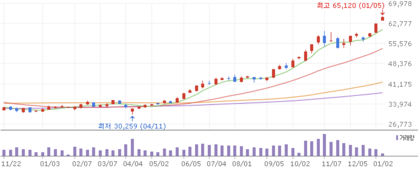 1월 7일, 엔터주가 동시다발적으로 수직 상승함.