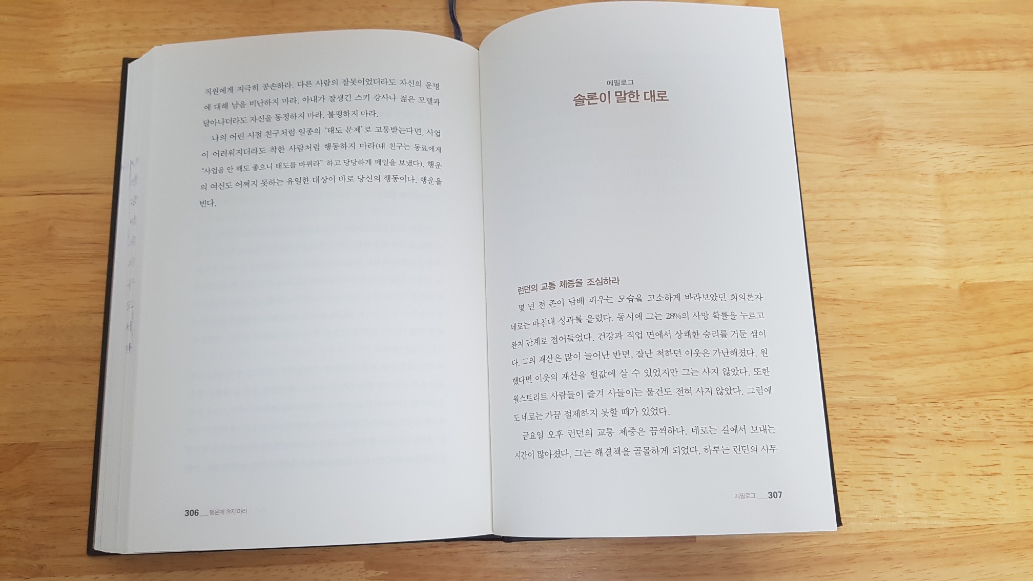 ' 나는 주기적으로 MBA 출신들에게 운에 대한 생각을 이해할 수 있도록 몇 마디로 요약해달라는 요청을 받곤 했다. 이런 요청을 받으면 랍비 힐렐의 이야기가 떠오른다. 사람들은 그에게 외다리로 서서 들어도 될 정도로 율법을 간략하게 가르쳐줄 수 있는지 물었다. 천재적인 힐렐은 율법을 요약하는 대신, 사람들에게 화두를 던져주었다. 남에게 당하고 싶지 않은 일은 남에게 하지 마라.