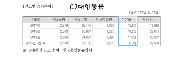 로지스틱스 기업은 신규 물류망 구축에 막대한 자금 소요 : CJ대한통운 기존 점유율만 봐도.