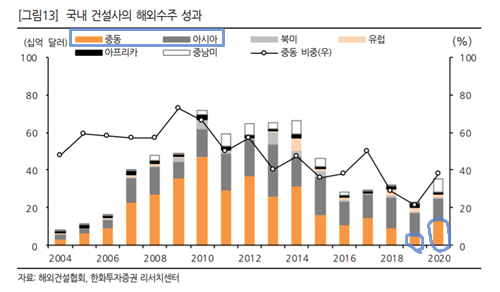 해외 수주잔고 추이 = 중동, 아시아지역 건설 계약이 가장 유력한 건설사는?