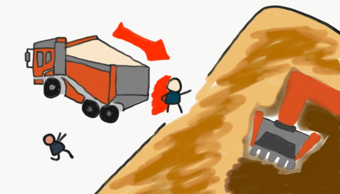 후진하던 덤프트럭 운전자 부주의 및 안전장치( 사각지대 반사경, 후진경고음) 미설치