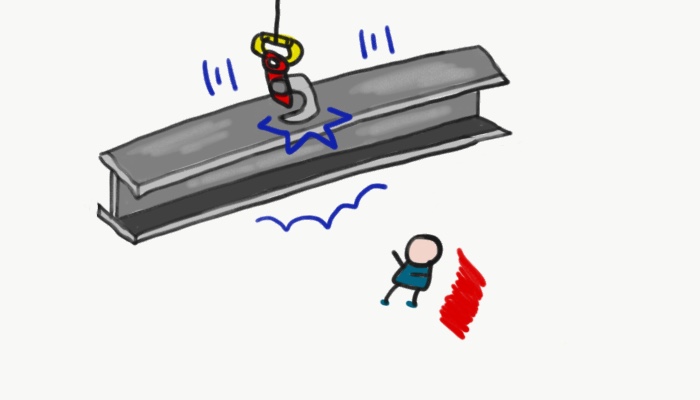 2021년 4월 18일 16:15경, 증축공사 현장 내 양중용 클램프(하카)에서 H빔 결속이 풀리며 떨어져 재해자가 깔려 사망했다.