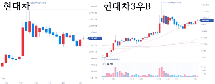중고차 매매시장이 위협적이고 비합리적이라는 것을 여실히 보여준다. 법과 제도가 피해자를 구제하고, 가해자를 강력히 처벌하면 좋으련만, 현실적으로 어려워 보인다. 그렇다면, 대안은 없을까? 제조사에서 운영하는 인증 중고차가 한 방법이 될 수 있겠다. 그래서 이번 기사가 동시에 쏟아지는 데 주목했다. 현대차, 현대차우, 현대차2우B, 현대차3우B 중 어느 하나가 급등할지 기대하며 말이다.