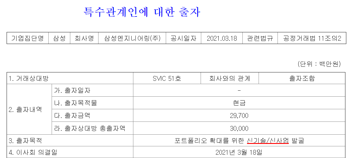3월 18일 공시를 통해, 친환경 미래 에너지인 수소와 탄소중립 등의 신사업 육성을 위해 이번 투자조합을 결성했다고 한다.