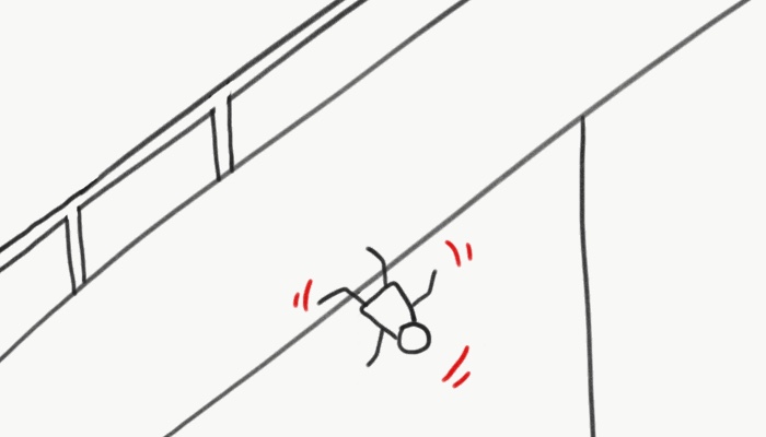 청소 작업 중 경사로에서 떨어짐