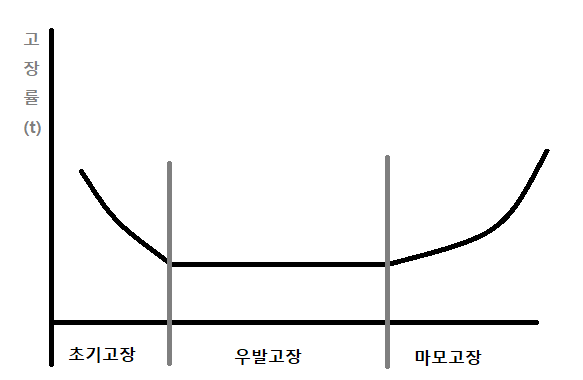 | 1. 초기고장 | 초기 스트레스에 의해 발생 고장률 감소 1. 표준 이하 재료 사용 2. 기술, 가공, 취급, 제조, 품질 관리 부족 3. 불충분한 디버깅 |
