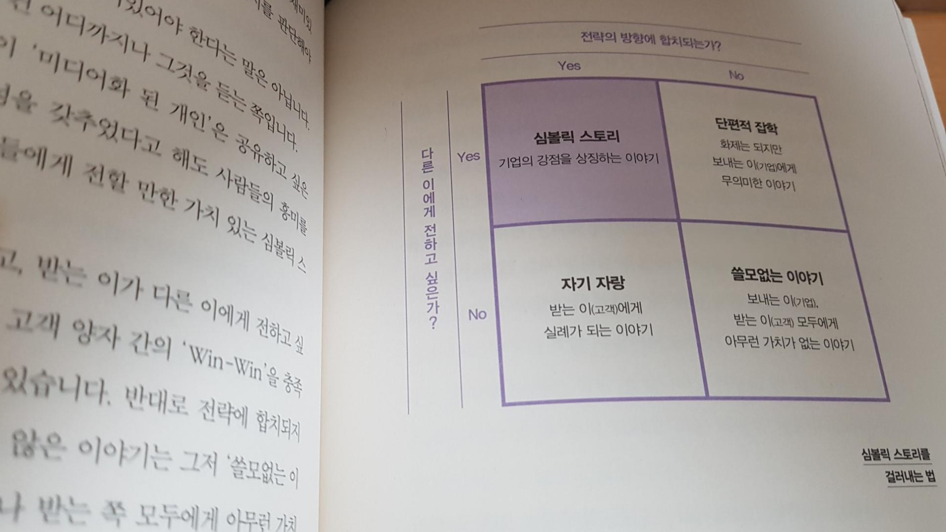 유튜브 영상을 보다가 누군가에게 알려주고 싶은 적이 있습니다. 영상이 재미있기 때문입니다. 저자는 듣기 그럴싸한 이야기와 심볼릭 스토리를 구분하는 방법으로 '재미'를 제시합니다. 일차적으로 보내는 이와 받는 이가 서로 Win-Win 할 수 있는 이야기인지를 확인하는 것인데, 보내는 이는 '기업과 브랜드' 받는 이는 '고객'입니다. 고객의 입장에서 Win은 '재미'를 뜻합니다.
