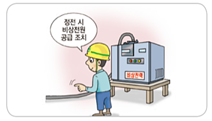 사업주는 정전에 의한 재해가 발생할 우려가 있는 경우에는 비상전원을 접속하여야 한다.