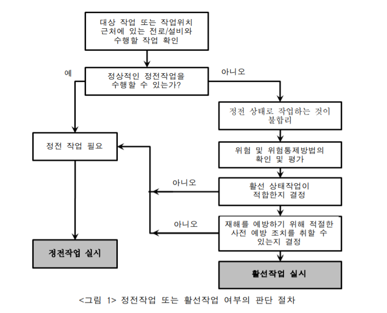 | 1. 적용범위 | 감전위험이 전기설비의 설치·해체·정비·점검 등의 작업을 하는 경우에 적용 |