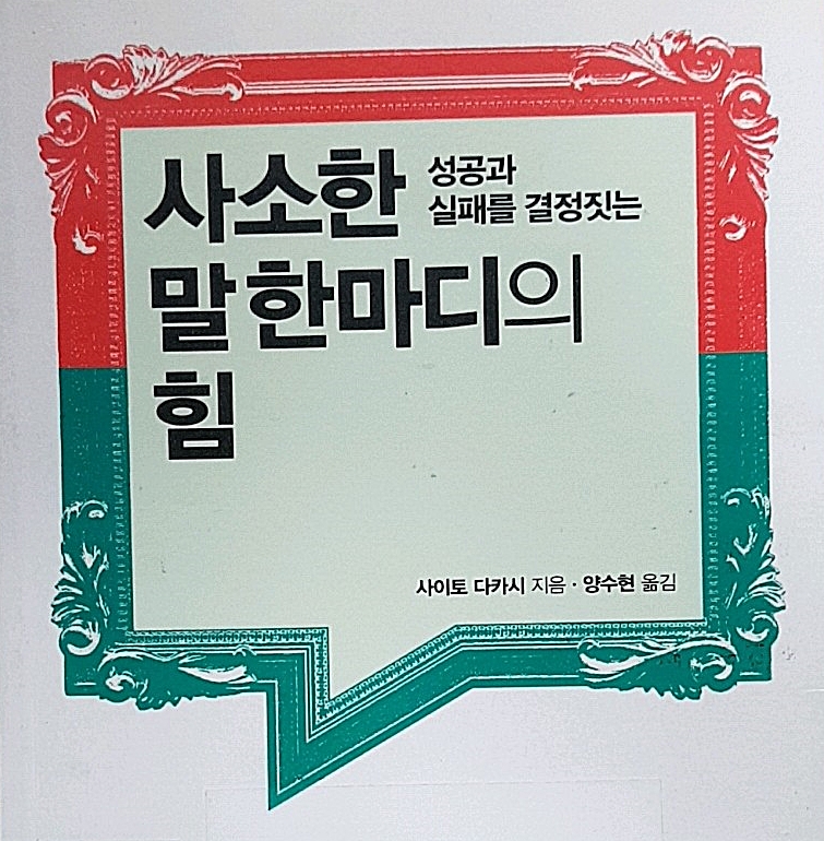 이 책 《성공과 실패를 결정짓는, 사소한 말 한마디의 힘》은 누구나 생각할 수 있는 기본적인 말 습관에 대해 말한다. 말하기의 '기본'에 대해서 다루기 때문에 지루하기도 했고 많이 접해본 자기 계발서 같은 느낌도 있다. 그래서 책 초반부에서는 '괜한 시간 낭비 아닌가'하는 생각이 들었다.