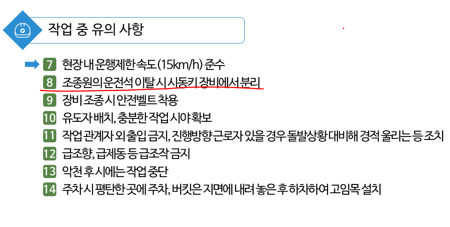 9. 장비 조종 시 안전벨트 착용