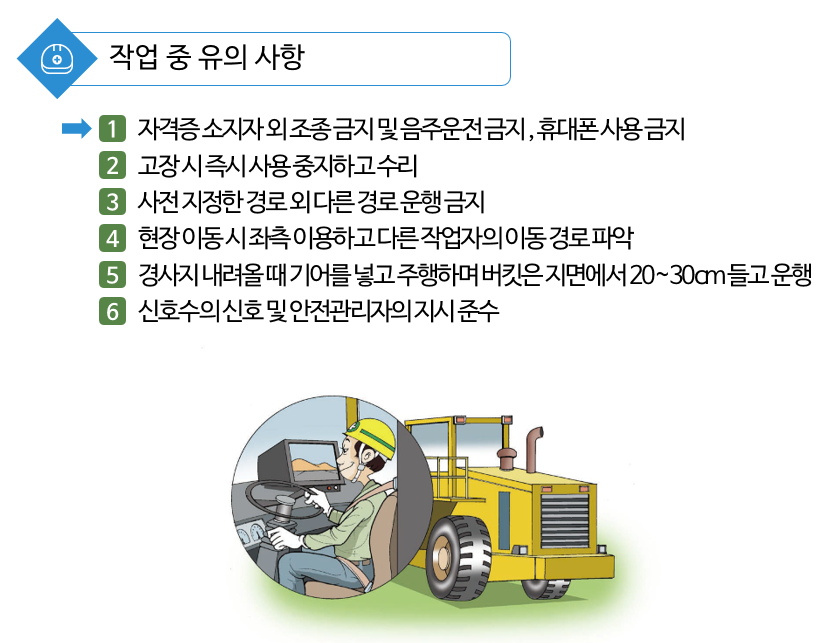1. 자격증 소지자 외 조종 금지 및 음주운전 금지, 휴대폰 사용 금지