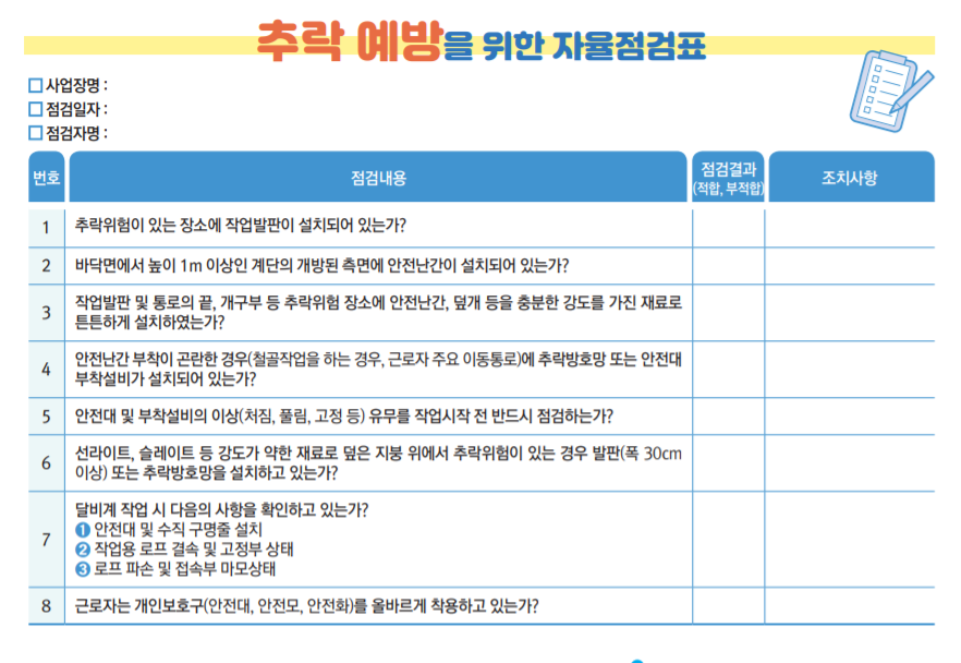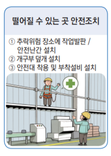 1. 추락위험 장소에 작업발판, 안전난간 설치