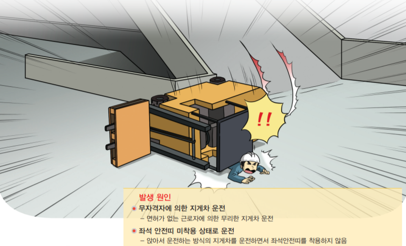 2021년 12월 24일 10:30 경, 화성시 소재 야적장에서 지게차 백레스트에 슬링벨트로 철근다발을 묶어 철근다발 위치 조정 중 지게차 전도되어 근로자 1명이 깔려 사망했다.
