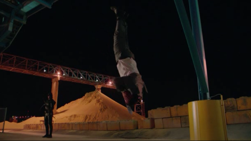 마틴 소머스는 언론 비판이 심해질 것을 우려해서 재판을 막으라고 지시한다. 말이 끝나자마자 화살이 날아든다. 깜빡이는 불빛 아래서 부하들이 모두 쓰러진다. 무슨 일인지 상황 파악이 안 되는 그를 향해 '그린 후드'가 다가와 기절시킨다. 소머스는 거꾸로 매달린 채 의식을 찾았다. 눈 앞에 서있는 그린 후드를 발견한다. 그린 후드는 말한다. " 마틴 소머스, 넌 도시를 망쳤다." 화살 한 발을 마틴 소머스에게 날리고 다시 말한다. "다음 재판에서 벡터를 죽인 게 니 짓이라고 자백해. 두 번째 경고는 없다."