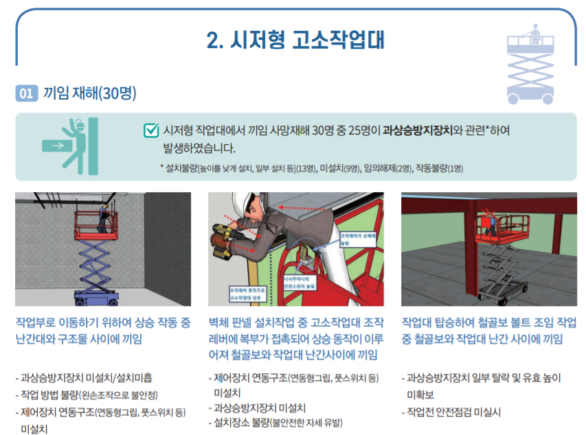 2) 시저형 고소작업대는 끼임 재해가 가장 많았으며,