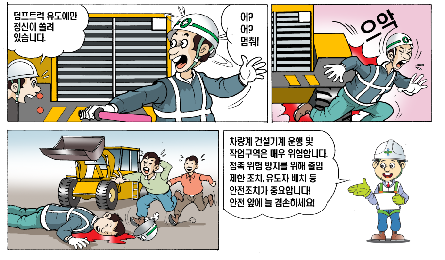 - 차량계 건설기계에 접촉돼 부딪칠 위험이 있는 장소에 다른 근로자 출입 제한 또는 유도자 배치