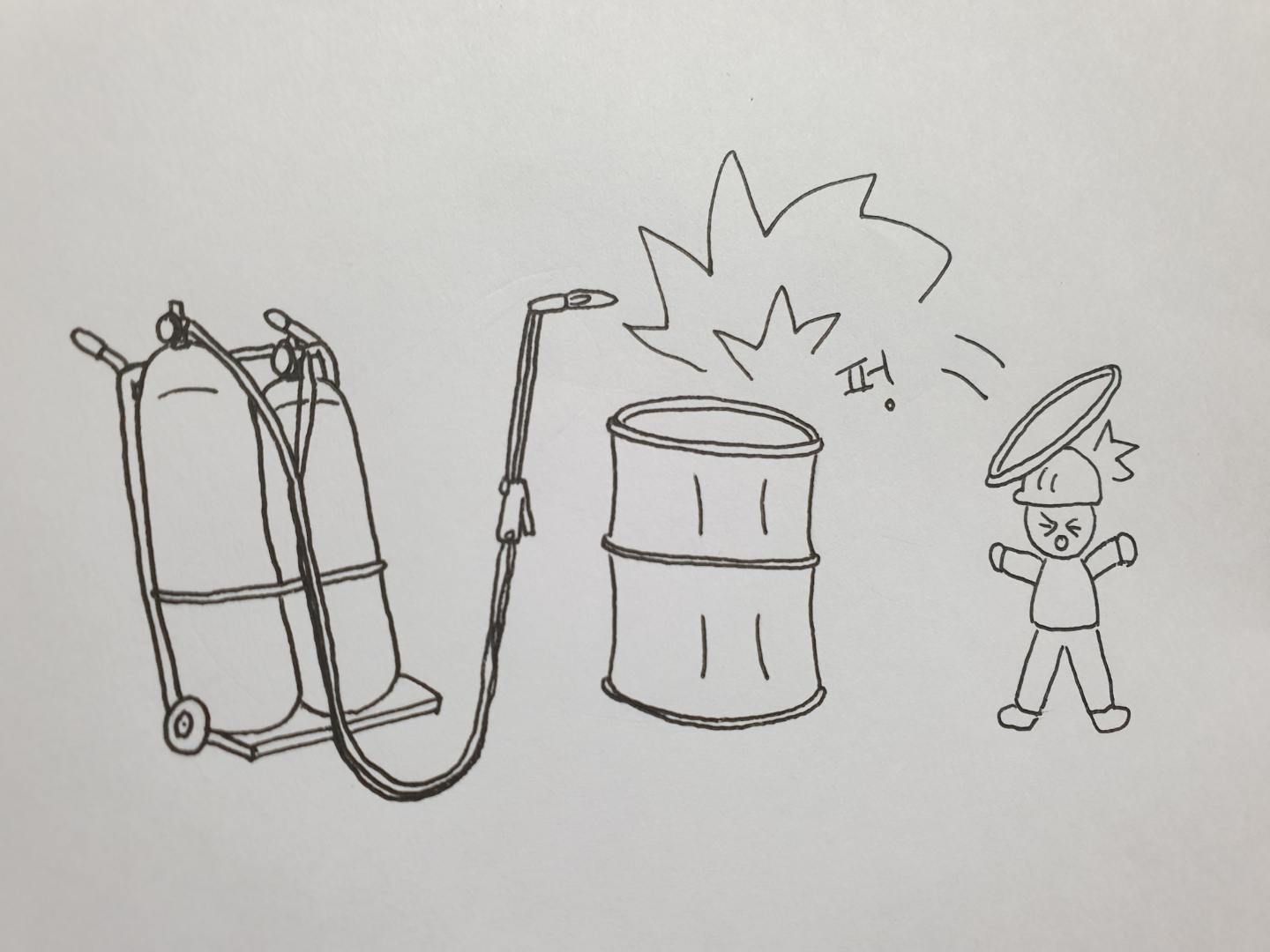 2022년 2월 25일 12시 55분경, 울산광역시 소재 비금속 광물제품 제조업 공장 내에서 산소절단기를 가동한 상태에서 토치를 드럼위에 올려놓았다가 유증기에 의해 드럼용기가 폭발하며 재해자가 뚜껑에 맞아 사망했다.