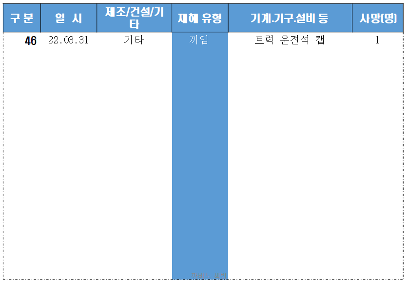 | 22년 2월 사망재해통계, 사망자 33명... (0) | 2022.03.16 |