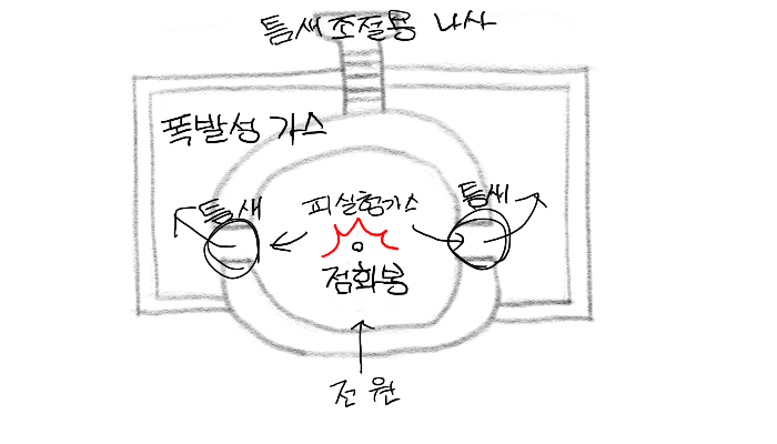 ★ 폭발 등급에 사용되는 표준 용기는 구상 용기의 틈새를 통해 화염일주한계를 측정하는 장치이다.