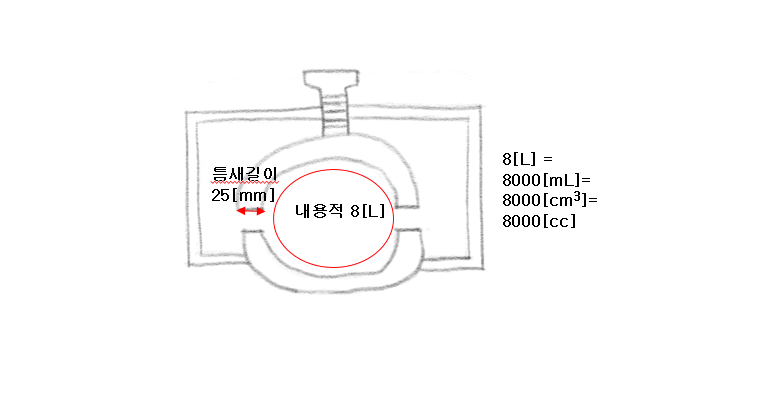 → 내용적은 8000 [㎤],반구상 플렌지 접합면의 안길이는 25 [mm]