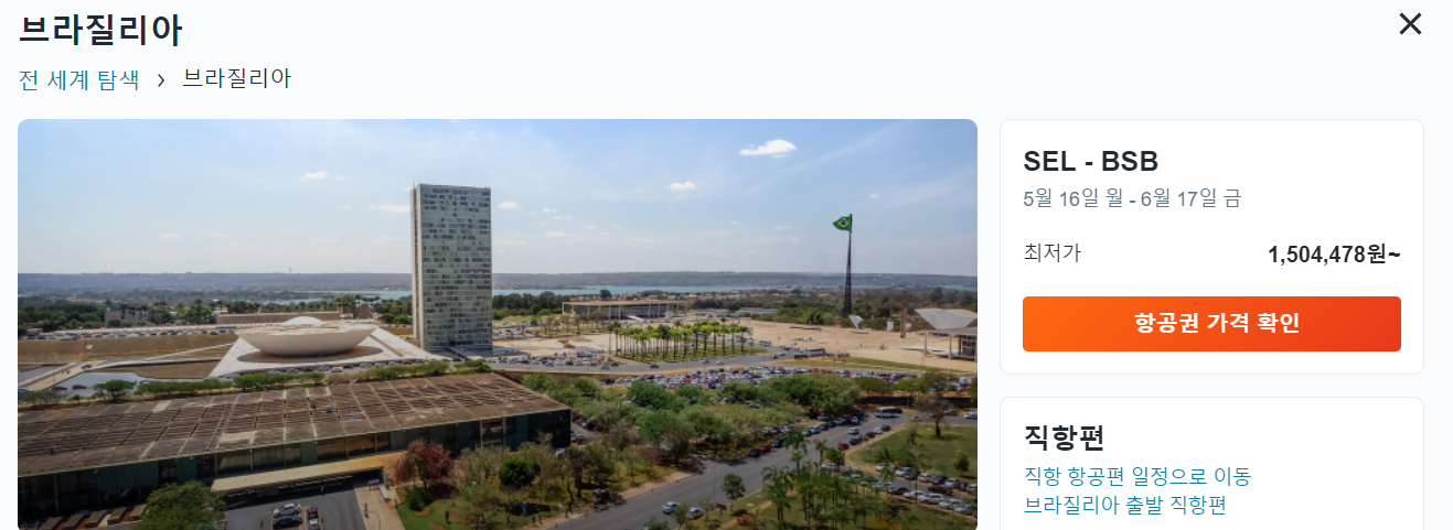'항공사사이트들을 둘러보며 브라질에 다녀오는 데 드는 최소비용을 알아보았다.'