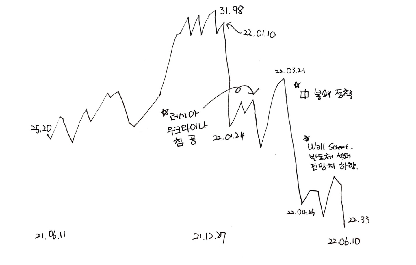 | (22.06.10)종가(환율) | 22.33(약 1280원) |