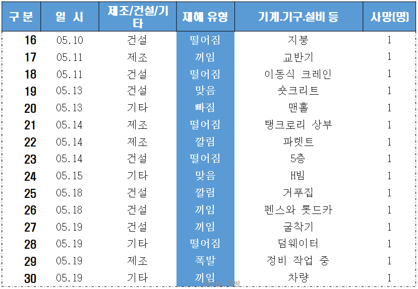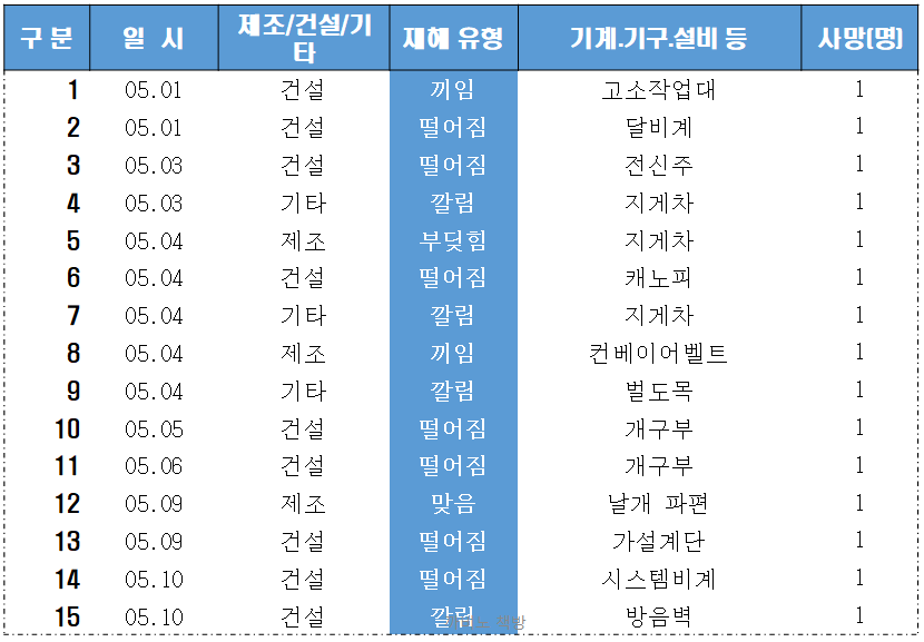 전체 사고의 절반이 건설업이며