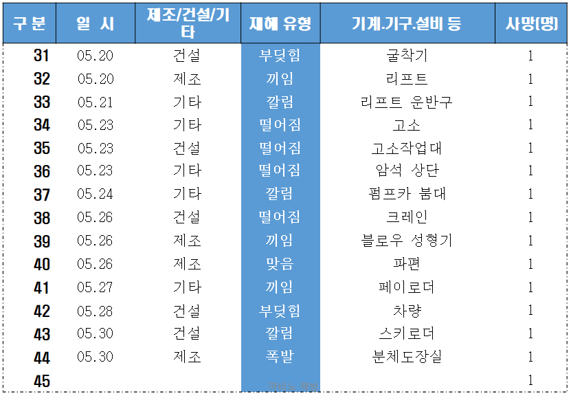 22년 5월 사망사고 44건 발생했고,