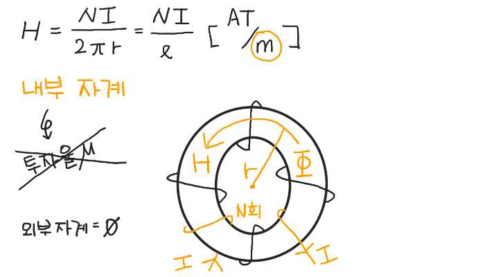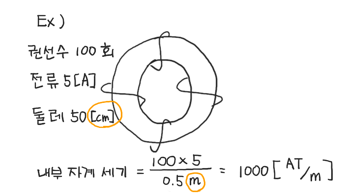 참고로 내부 자계 세기는 [m] 단위이므로 둘레 [cm] 단위를 변환시켜야 한다.