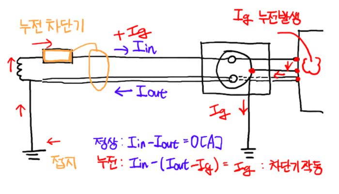 누전이 발생하면 그 이상현상을 감지하여 자동으로 전원 차단시킨다.