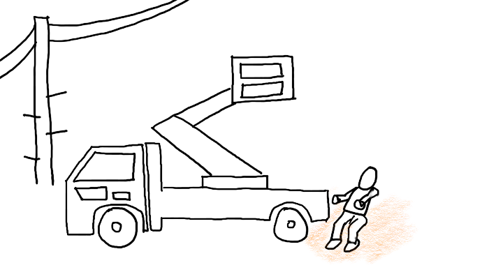 후진하는 활선작업차에
