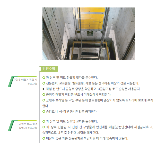 엘리베이터 설치 작업 과정에서