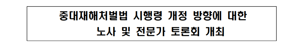 고용노동부는 9월 1일(목) 오후 2시 노·사 및 전문가들이 참여하는 ‘중대재해처벌법 시행령 개정방향 토론회’를 개최했다