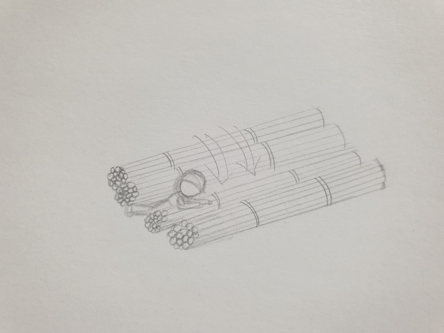좌측에서 넘어진 파이프와 우측의 파이프 사이에