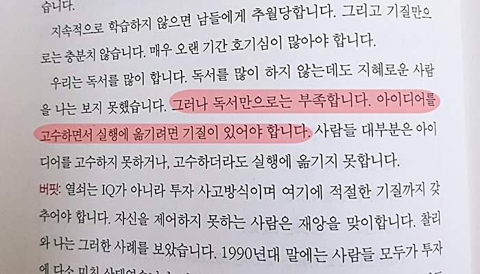 여전히 애정 어린 종목이 있고, 그 기업의 성장 가능성을 믿으면서도, 한편으로는 아니라는 걸 깨닫기도 한다. 이런 걸 '인지부조화'라고 하던가. 독서를 통해 쉽게 빠질 수 있는 심리적인 문제라는 걸 알게 됐다. 빠져나갈 수 있는 아이디어도 얻었다. 하지만 여전히 관심 종목이며, 투자 종목이다. '아이디어를 실행에 옮기려는 기질'이 부족한 건가? 제어하지 못해서 재앙(내재 가격보다 낮아지는)을 맞이하기 전에 행동을 해야겠다.