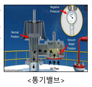| * 통기밸브: 탱크 내부와 대기압 사이의 압력의 평형을 유지시켜 압력변화로 인한 위험을 보호하는 목적의 밸브 |
