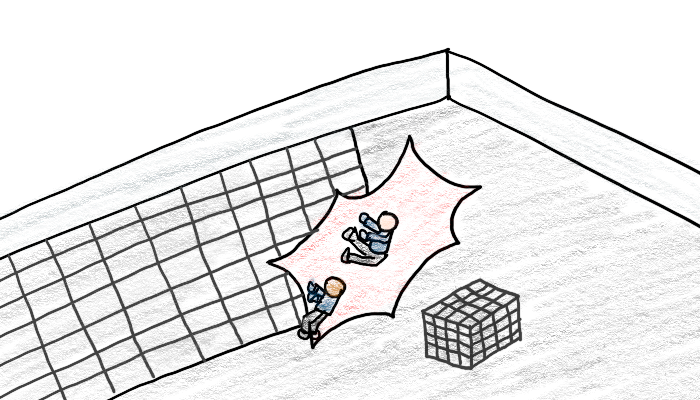 바닥이 무너지면서 3층 램프구간으로 5명이 떨어져(약 13m 높이)