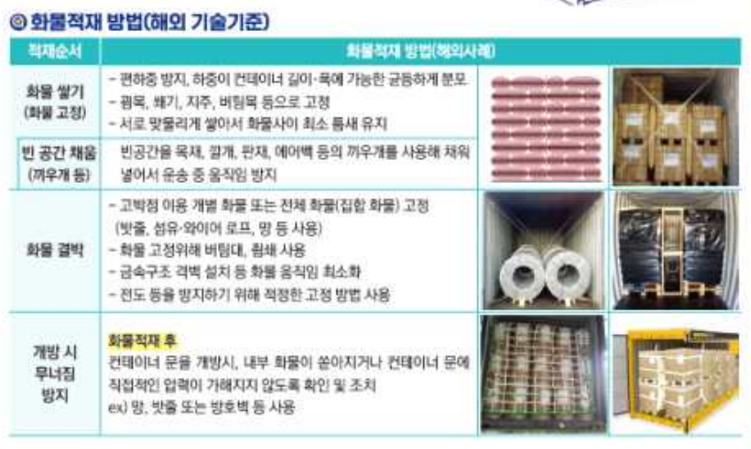 동 기술자료는 화물 적재작업 순서, 화물 형태에 따른 화물 쌓기 방법, 화물 결박 방법, 문 개방 시 화물 떨어짐 예방 조치 등 안전한 작업 방법에 관한 내용으로 국내 사례, 해외 기술기준(영국 표준(BS))을 참조하여 제작하였으며, 철강업.운수업 등 화물자동차 다수 사용 업종, 화물자동차운송사업연합회 등에 배포할 계획이다.