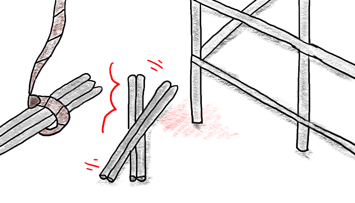 적재된 각파이프가 재해자 방향으로 넘어지면서