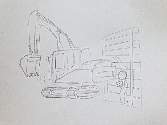 회전하던 굴착기 후면 카운트웨이트와 옹벽 사이에