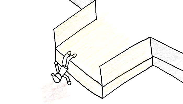 가장자리 단부에서 바닥으로 떨어져 사망했다.